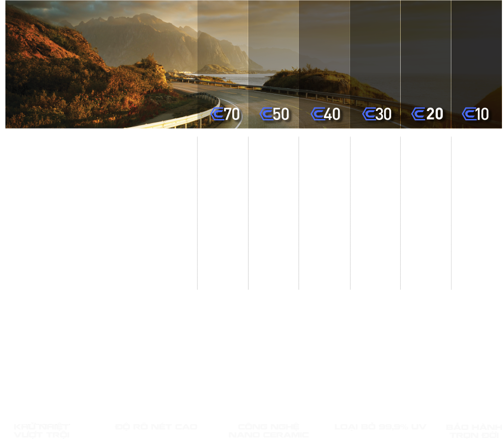 Với công nghệ nano ceramic hiện đại, có khả năng tự động điều chỉnh ánh sáng, không hấp thụ nhiệt trên kính khi tiếp xúc với ánh nắng mặt trời. Đặc biệt là khả năng chống 99% tia cực tím và giảm từ 80 – 99% tia hồng ngoại.Giúp gia tăng tuổi thọ của những đồ vật bên trong ô tô, hạn chế tình trạng trầy xước, bong tróc hay phai màu bởi ánh nắng mặt trời. Làm gia tăng độ an toàn đối với người lái trong trường hợp kính bị rạn nứt.